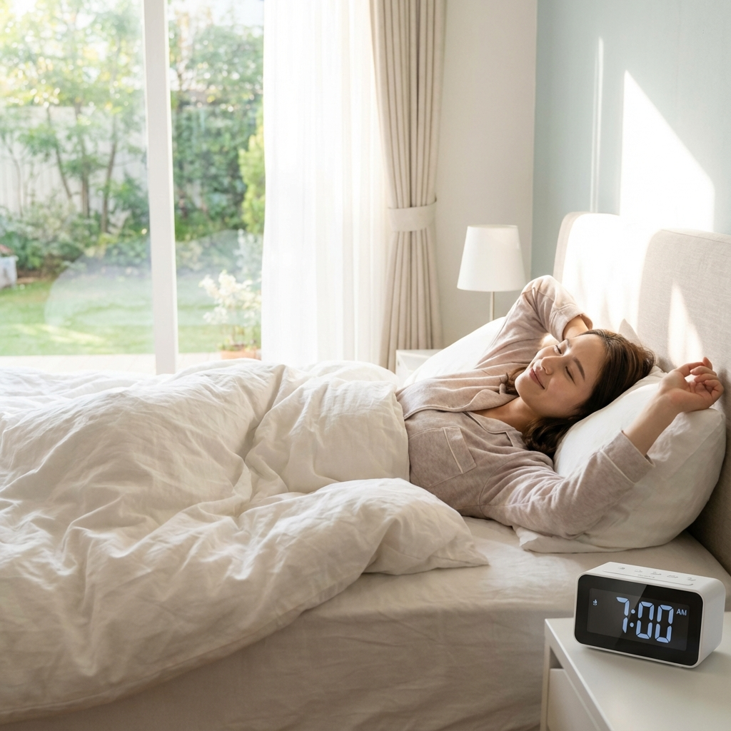 Nach drei Monaten hat sich dein Schlafrhythmus stabilisiert. Du genießt regelmäßig erholsamen Tiefschlaf und fühlst dich tagsüber voller Energie.